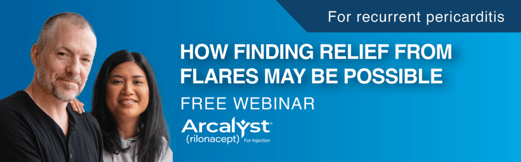 Virtual (Zoom)06/26/2025 ARCALYST Inspirations Webinar:: How Finding Relief from Flares May be Possible 7:00 pm - 8:00 pm ET / 4:00 pm - 5:00 pm PT Dor Lotan, MD, Cardiologist specializing in recurrent pericarditis Gary, Individual living with recurrent pericarditis Roxanne, Wife and caregiver to Gary Program Information Recurrent Pericarditis (RP) often causes repeated episodes of pain…